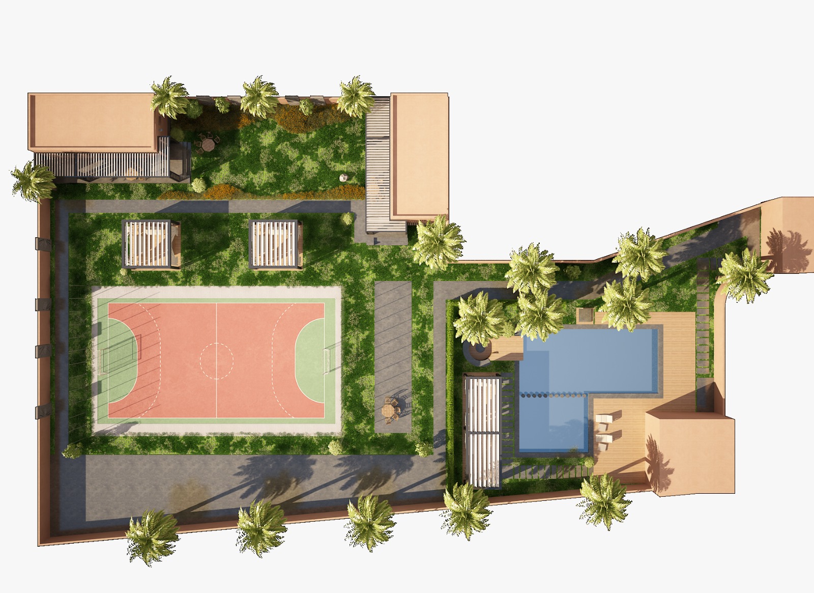 La composition des espaces favorise la fluidité des parcours et la diversité des usages, en alternant zones intérieures et extérieures connectées par des ouvertures généreuses. Cette organisation permet d’offrir aux usagers une expérience à la fois fonctionnelle et immersive, où l’architecture accompagne les activités de détente, de sport et de loisirs.